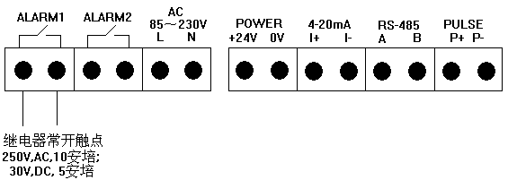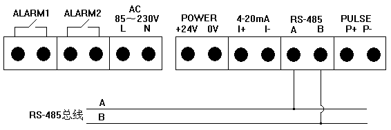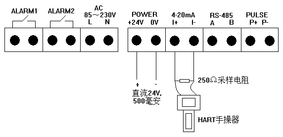 (2)四线制4-20mA电流输出和HART手操器的接法: