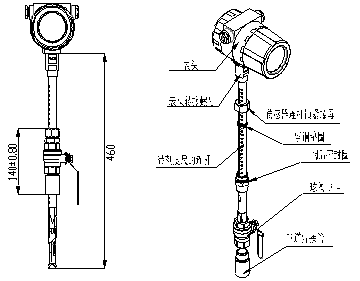 (一) 一体型插入式应插入至被测管路轴心,所以测量杆长度视测管径大小而定。订货时应说明。若不能插入至管道轴心,将有厂方提供标定系数,以完成准确测量。